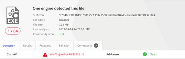 По состоянию на данное время компания-разработчик CCleaner (5.34) и CCleaner Cloud (v1.07.3214) выпустила обновление безопасности для своих продуктов, которые не содержат вредоносного программного обеспечения (malware) Floxif, найденного в 32-битной версии CCleaner 5.33.6162 and CCleaner Cloud 1.07.3191.
