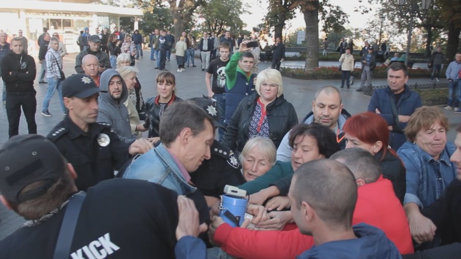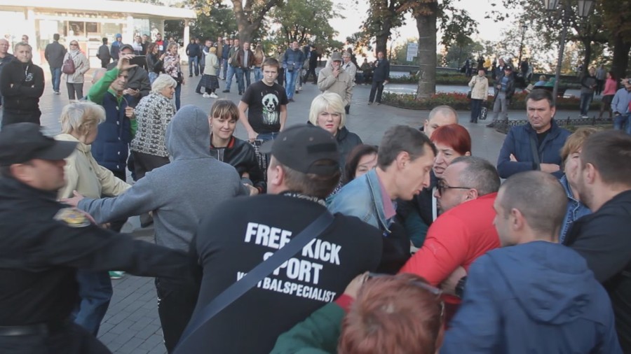 "Человек без гражданства Украины, без поддержки населения, приезжает в нашу страну и диктует, как надо жить ее гражданам. Я - инвалид по зрению и, к сожалению, не могу опознать нападавших. Но меня били по голове и затылку. Я обратился в правоохранительные органы и, надеюсь, что бандитов с которыми Саакашвили приехал в Одессу привлекут к уголовной ответственности.", прокомментировал общественный деятель Святослав Огренчук.