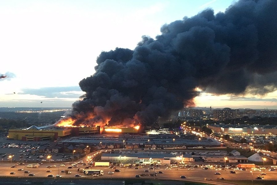 В минувший уикенд в Москве сгорел торговый центр Синдика, расположенный неподалеку от района Строгино. Общая площадь очагов пожара достигла 55 тысяч квадратных метров.