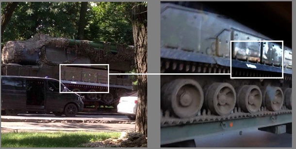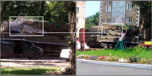 Также экспертная группа Bellingcat утверждает, что отличительные особенности сфографированного Бука полностью совпадают с теми, что видны на правом борту Бука-332 в РФ почти за месяц до падения Боинга.