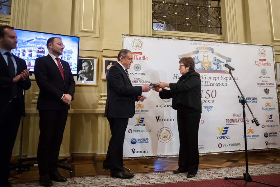 7 листопада 2017 року у Національній опері України відбулася презентацію монет, поштових марок та першого тому енциклопедії «Національна опера України» (А-К), випущених до 150-річчя Національного академічного театру опери та балету України імені Т.Г. Шевченка. Участь у заході взяли Генеральний директор Національного академічного театру опери та балету України ім. Т.Г.Шевченка Петро Чуприна, представники Національного банку України, Міністерства культури України та ПАТ «Укрпошта».