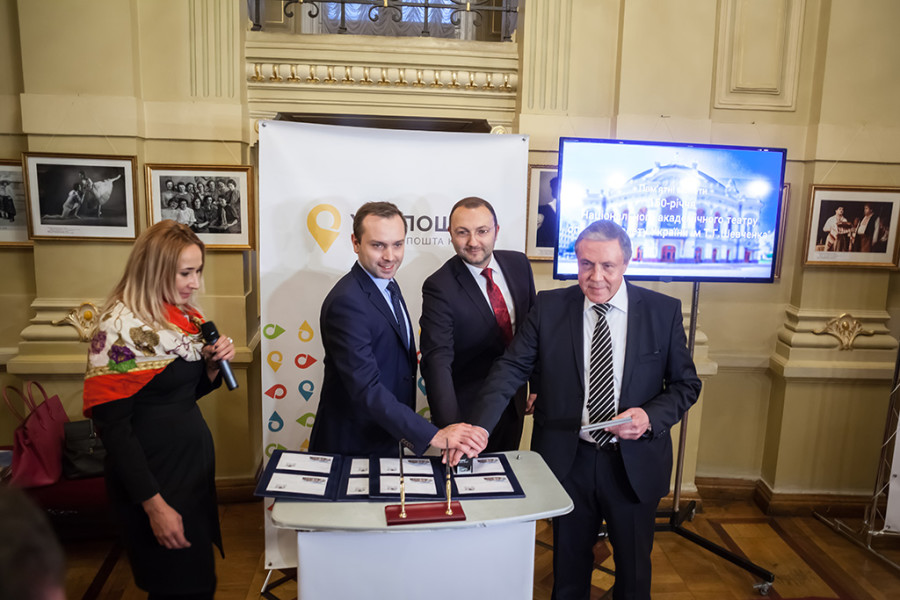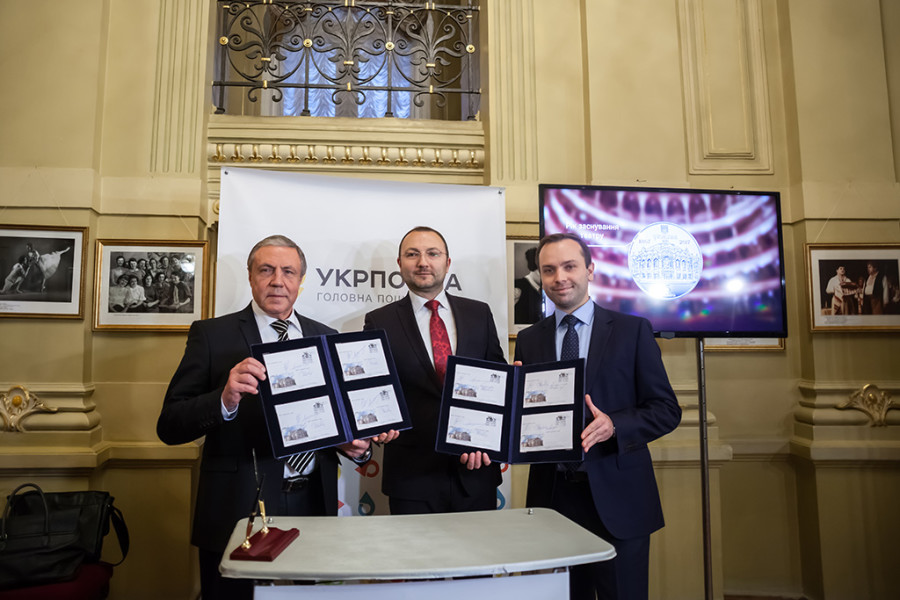 Також відбулося спецпогашення поштових марок та конвертів, випущених до ювілею театру ПАТ «Укрпошта». На марці зображено нотний стан і пюпітр, на конверті - будівля Національної опери. Дизайн Наталії Божої. Тираж конвертів - 577 419. Випуск маркованих конвертів та марок - є доброю традицією провідних театрів. Так, Ла-Скала, Сіднейська опера, Royal Opera має свої марки. 150-річчя Національного академічного театру опери та балету України імені Т.Г. Шевченка стало гарною нагодою мати свою марку.