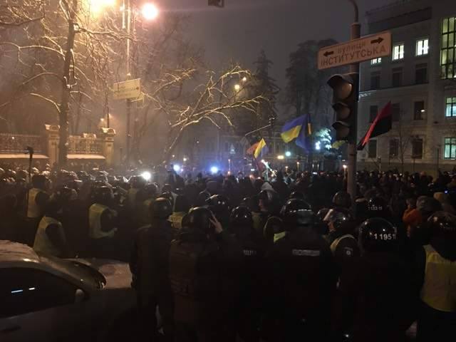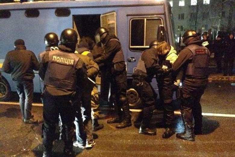 Конфликт возник после попытки участников акции поставить палатку возле здания ведомства на проезжей части. Правоохранители помешали этому, оттеснив участников акции от здания МВД до угла улиц Академика Богомольца и Пилипа Орлика. В ответ участники шествия бросали в правоохранителей снежками. После чего правоохранители начали задерживать людей.