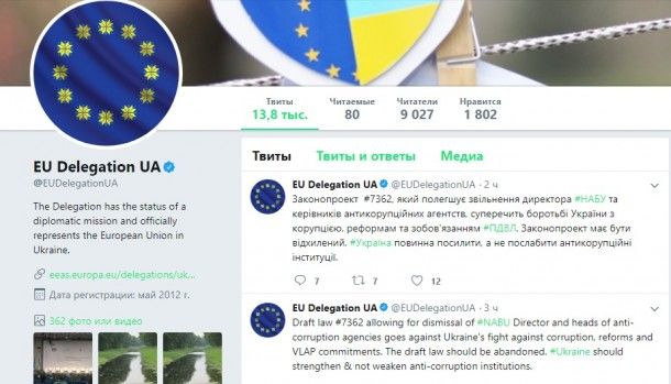 "Законопроект №7362, который облегчает увольнение директора НАБУ и руководителей антикоррупционных агентств, противоречит борьбе Украины с коррупцией, реформам и обязательствам в рамках Плана действий по визовой либерализации. Законопроект должен быть отклонен. Украина должна усилить, а не ослабить антикоррупционные институты", – отметили в представительстве ЕС.