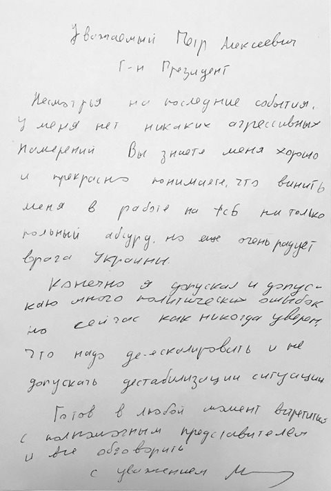 Как сообщалось, лидер партии "Рух новых сил" Михеил Саакашвили 18 декабря подтвердил, что писал письмо президенту Украины Петру Порошенко с призывом к деэскалации конфликта и началу политического диалога.