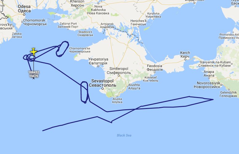 В это же время патрульный противолодочный самолет ВМС США P-8A Poseidon с бортовым номером 168432 и позывным PS076, вылетевший с авиабазы Сигонелла на итальянском острове Сицилия, был зафиксирован вблизи Севастополя и совершил полет к западу и югу от полуострова.