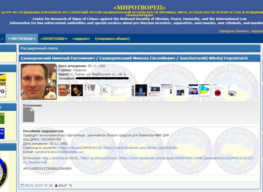 Напомним, ранее в СМИ появилась информация о том, что за антиукраинскую пропаганду Николая Санжаревского активисты сайта «Миротворец» включили в свою базу. Соответствующая карточка на хореографа появилась на сайте 8 января.
