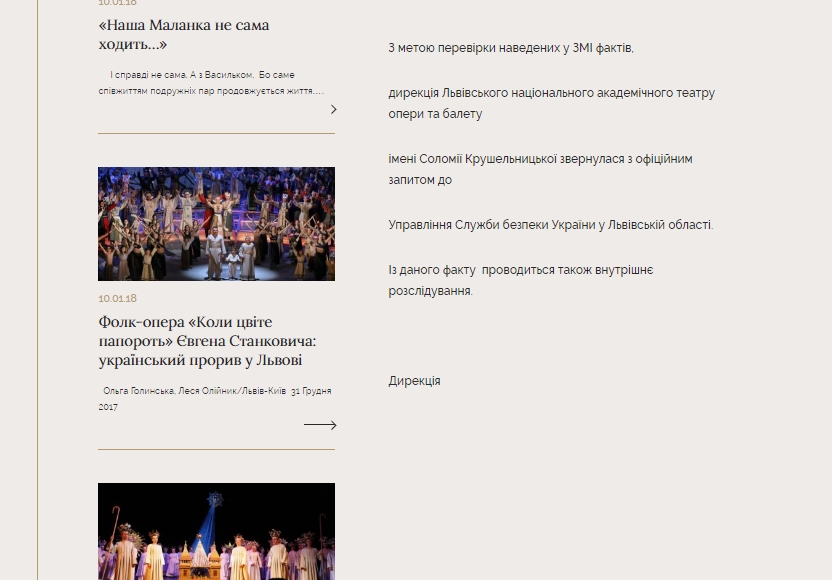 «По данному факту проводится также внутреннее расследование», - говорится в сообщении на официальном сайте Львовского национального академического театра оперы и балета имени Соломии Крушельницкой.