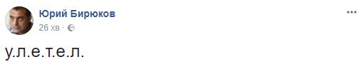 "Улетел", - написал Бирюков на своей странице в Facebook.