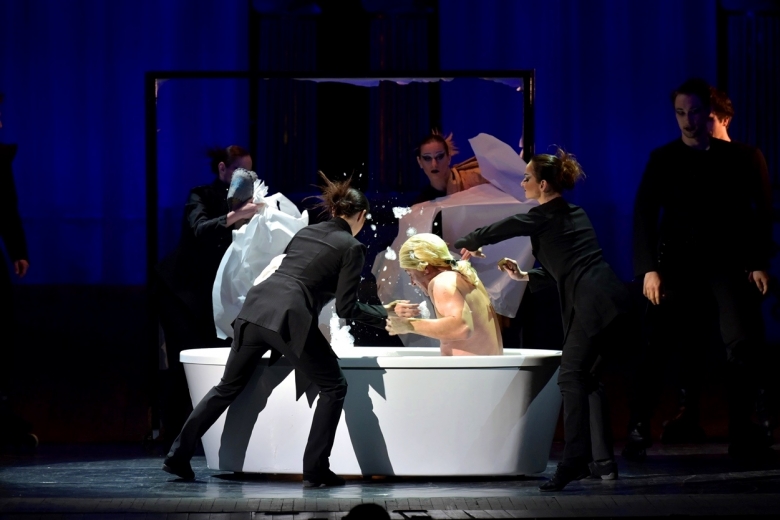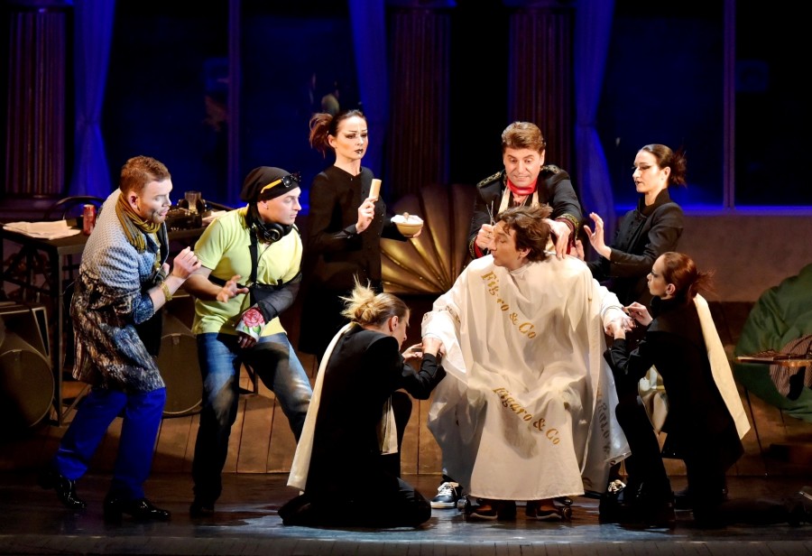 В постановке Богдана Струтинского блестяще соединились оперный вокал и причудливая актерская игра. Веселый сюжет эклектично связали элементы прошлого и современности. А неожиданные смелые решения постановки вызывают в зале нередкие искренние возгласы изумления.
