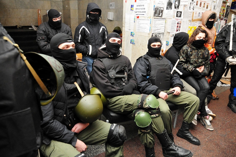 Выяснилось, что офис продолжает свою работу под охраной некой «Самообороны Майдана». По одной версии это были люди из группировки братьев Константиновских («братья Карамазовы», восходящие к украино-американской ОПГ Алика Магадана). По другой – офис охраняла «Самооборона» Игоря Кривецкого, спонсора партии «Свобода», известного в криминальном мире Львова как «Пупс».