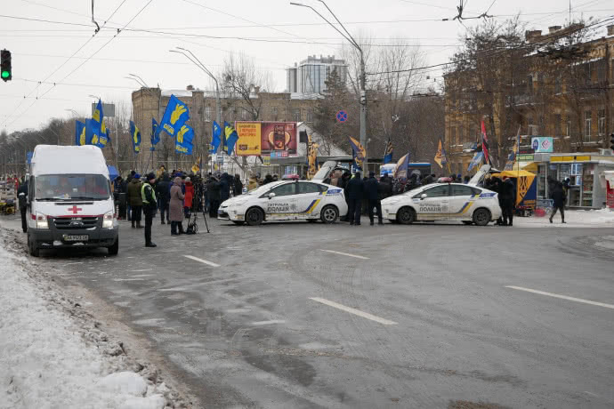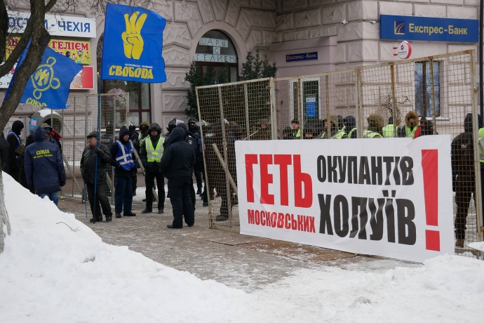 Националисты блокируют входы и подъезды к посольству.