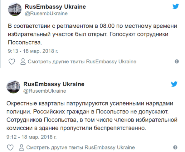 В российском посольстве в Киеве прокомментировали ситуацию на избирательном участке, где сегодня должны выбирать президента России.