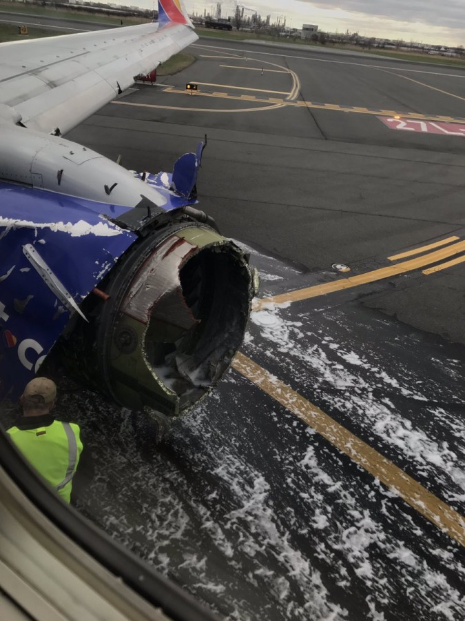 У Boing 737-700 американского лоу-коста Southwest Airlines после вылета из нью-йоркского аэропорта Ла-Гуардия в полете взорвался левый двигатель, осколки которого повредили иллюминатор, через который частично высосало пассажира, сидевшего у окна.