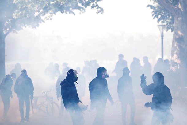 По данным властей, в погромах участвовали более тысячи активистов крайне левого движения Черные блоки, скрывающие лица масками.