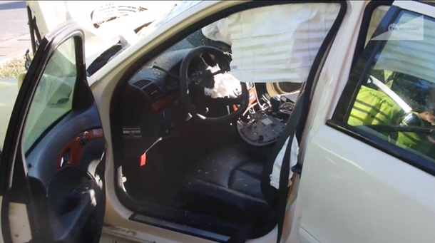 Два человека сидели в переднем кресле возле водителя, пятеро на задних сидениях и двое ехали в багажнике. Для эвакуации последних пожарные использовали спецтехнику.