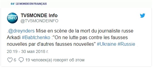 Глава МИД Бельгии Дидье Рейндерс раскритиковал инсценировку убийства российского журналиста Аркадия Бабченко. Об этом он заявил в эфире канала TV5Monde.
