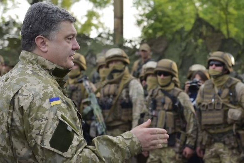 Украинские военные на Донбассе, которые воюют на передовой, получают 20 тысяч гривен. Об этом сказал президент Украины Петр Порошенко на встрече со студентами Украинской академии лидерства в Киеве.
