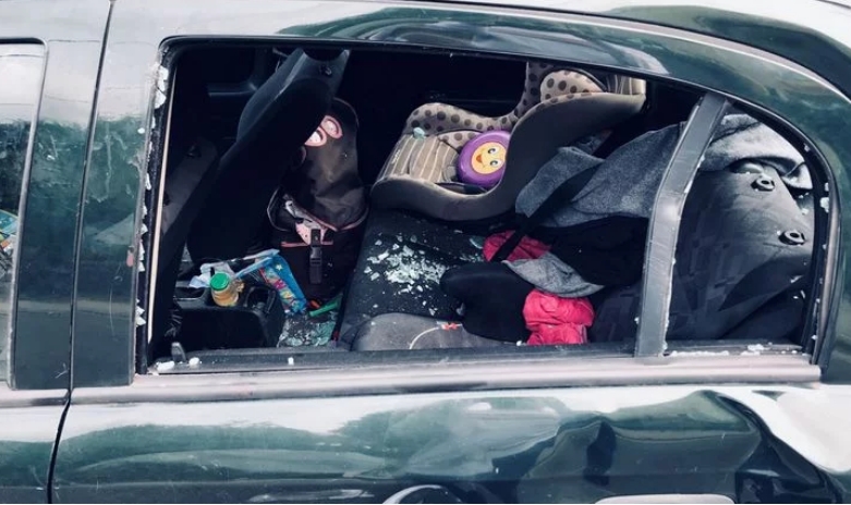 Женщина, которая была за рулем машины, остановила авто чтобы застегнуть ремень детского кресла на заднем сидении.