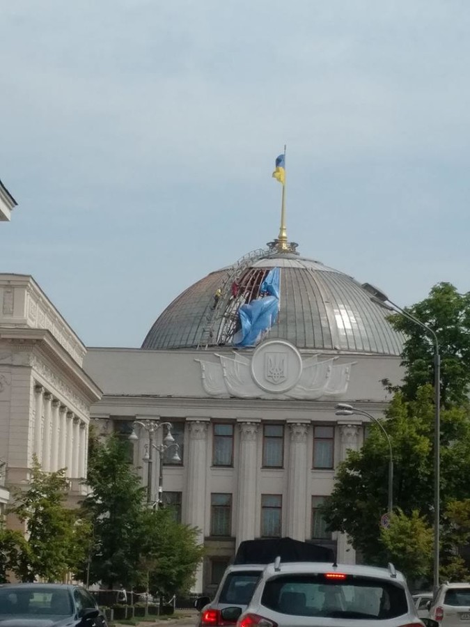 Сегодня, 27 июня, рабочие начали ремонтировать стеклянный купол здания Верховной Рады. Строители планируют отремонтировать металлоконструкции купола и шпиль, где нужно заменить металлическое покрытие. Кроме этого, заменят стекло, покрывающее купол.