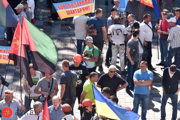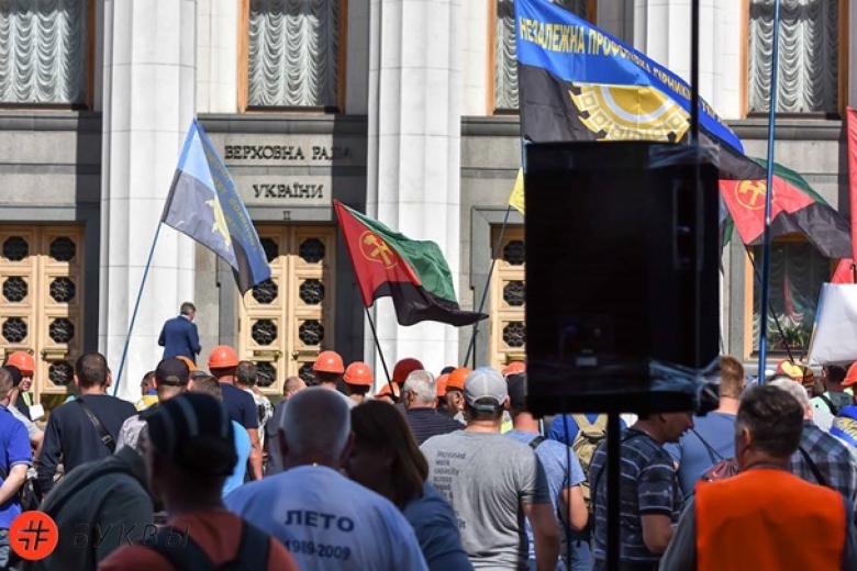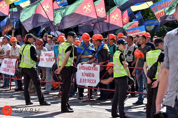 Как сообщает Укринформ, на площади Конституции на митинг собралось около тысячи работников шахт.