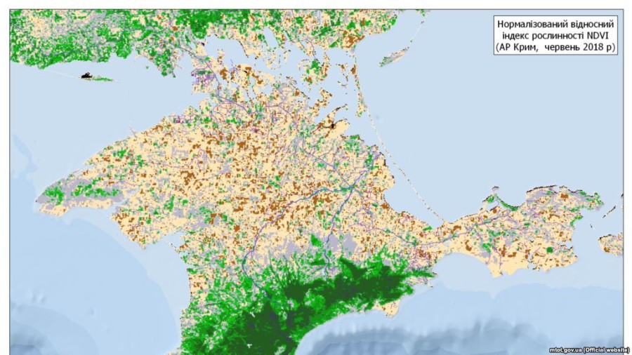 В частности, по данным дистанционного зондирования установлено, что в течение двух лет индекс NDVI (показатель количества активной биомассы, получаемой по данным по данным дистанционного зондирования земли), используемый для количественной оценки растительного покрова, в некоторых частях Крыма снизился до самой низкой отметки 0,3.