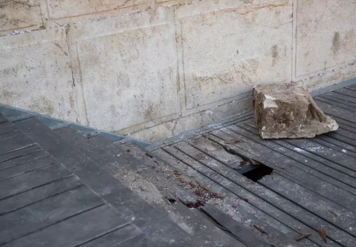 "Чиновники согласились с тем, что камень будет удален с места, где он упал, и будет поставлен под охрану, пока власти не смогут определить, можно ли его снова вставить", - сообщает The Jerusalem Post.