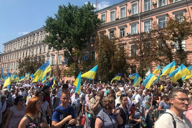 В Киеве в крестном ходе Украинской православной церкви Киевского патриархата по случаю празднования 1030-летия крещения Руси-Украины принимают участие около 65 тысяч верующих.