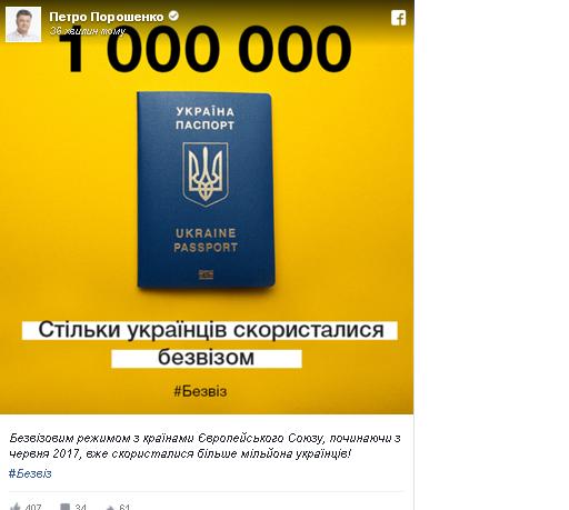 Глава государства отметил, что с начала работы безвизового режима со странами Евросоюза (июнь 2017 года) его преимуществами воспользовались более одного миллиона граждан Украины.