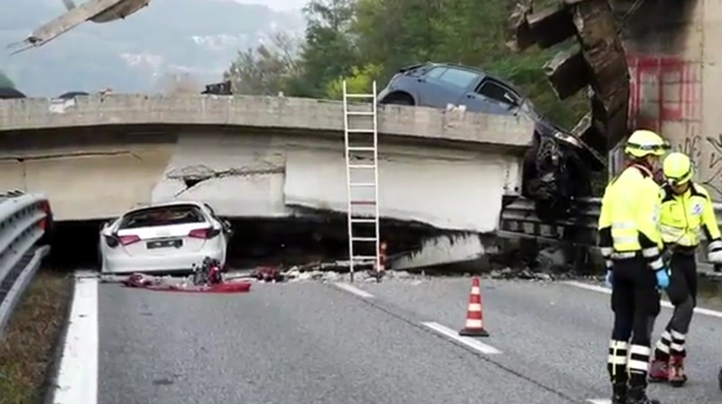 "Молния ударила в мост, и мы увидели, как он обрушился", - передает телеканал слова одного из свидетелей. Слова очевидцев о том, что в мост ударила молния, подтверждает агентство ANSA.