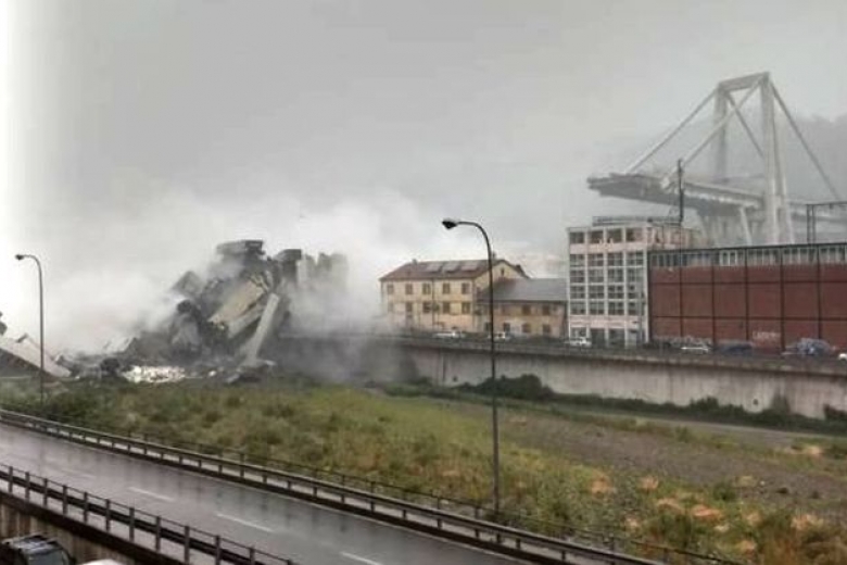 В автомобильный мост в городе Генуя на севере Италии, перед его обрушением во вторник, 14 августа, - ударила молния. В момент происшествия с инфраструктурным объектом в районе шел дождь.