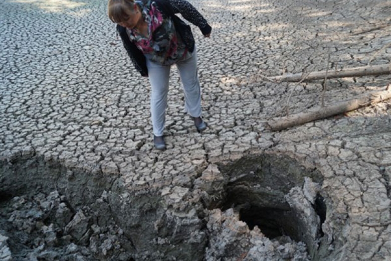 Озеро Тобечик под Керчью в последние недели пересохло с тало напомнать лунную поверхность. Из 18,7 квадратных километров водой покрыто не более 10% водоема. А остальную территорию покрывает соляная корка, под которой живут микроорганизмы.