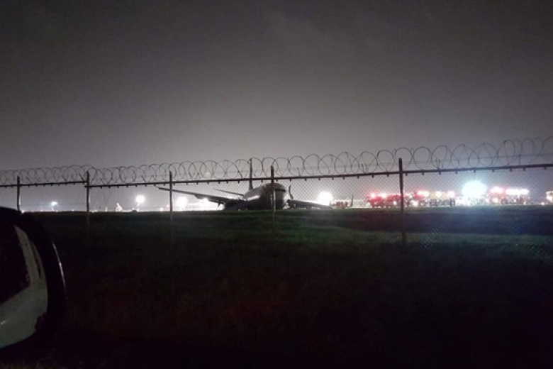 Как сообщает CGTN, лайнер около часа кружил над аэропортом. После приземления он выкатился за пределы взлетно-посадочной полосы, в результате чего от левого крыла самолета отвалился двигатель.