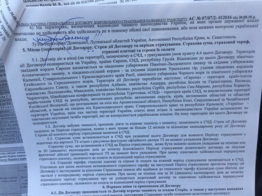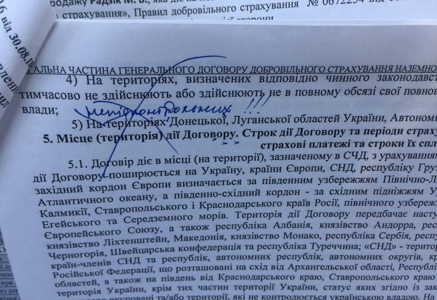Каково же было ее удивление, когда в известной и крупной страховой компании ей прямым текстом заявили, что они не намерены брать на себя риски по авто, которое может пострадать в результате, скажем обстрелов сепаратистов.