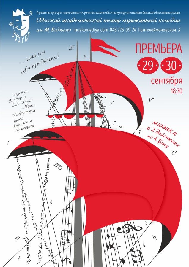 Одесский академический театр музыкальной комедии имени Михаила Водяного приготовил в новом сезоне зрителям невероятную премьеру в 2-х действиях по мотивам повести Александра Грина «Алые паруса».