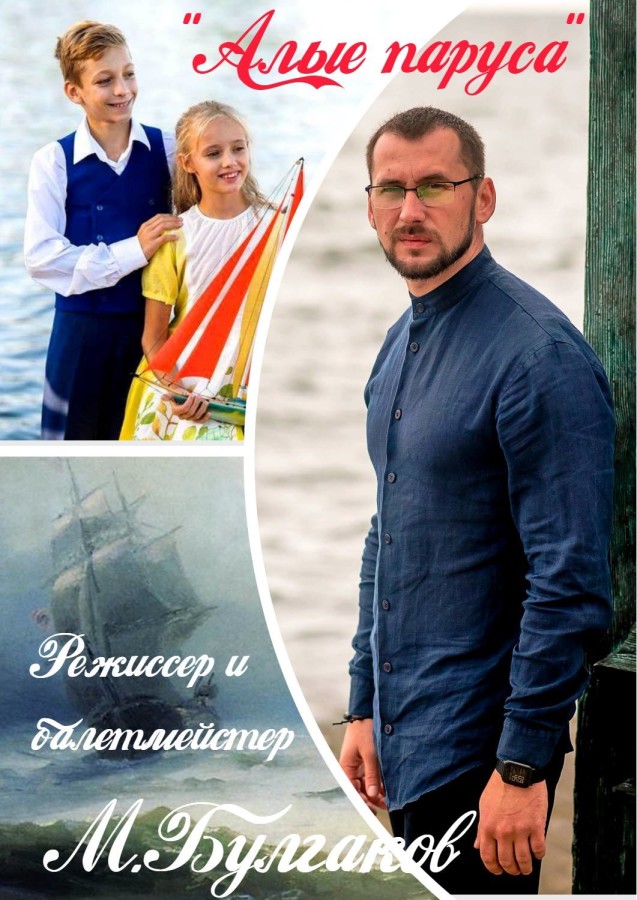 Сила мечты способна изменить жизнь, перевернуть весь мир, творить чудеса! В это искренне верил автор замечательной повести «Алые паруса» — Александр Грин. Он знал эту силу. Для нее не существует никаких преград, не существует ничего невозможного… Нужно только твердо верить в свою мечту и ждать чуда. НО… все это возможно при одном условии: если ты сможешь преодолеть себя! Так думает создатель мюзикла – режиссер и балетмейстер-постановщик спектакля Максим БУЛГАКОВ.
