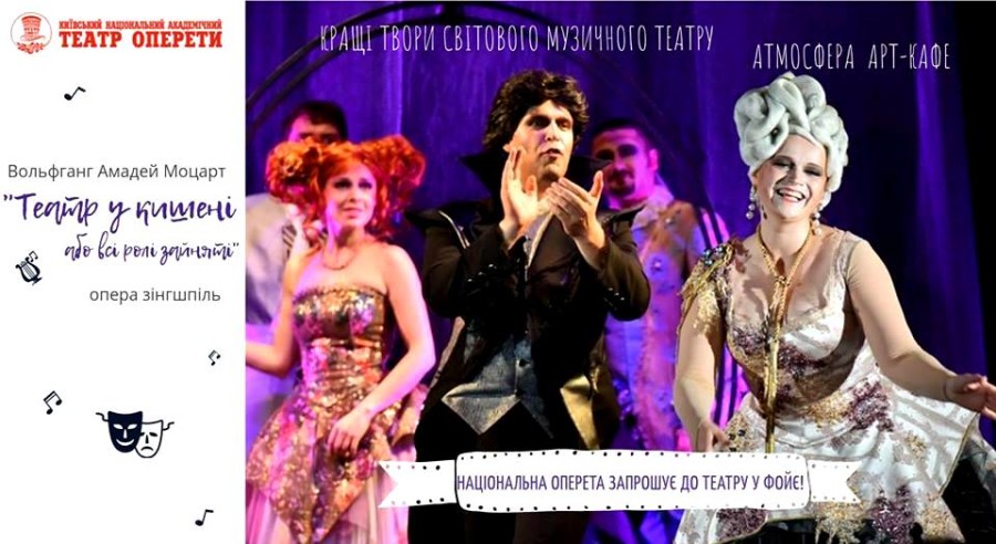 Комическая опера-зингшпиль «Театр в кармане, или Все роли заняты» - талантливая интерпретация двух зингшпилей В.-А. Моцарта «Директор театра» и «Бастьен и Бастьенна» в постановке молодого режиссера, балетмейстера, актера и ведущего солиста балета Национальной оперетты Украины Максима БУЛГАКОВА.