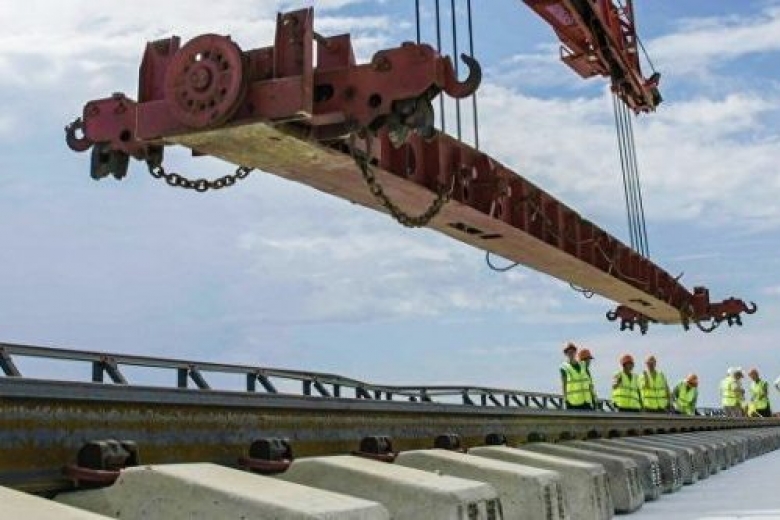 "На морском участке строительства моста между Тузлинской косой и одноименным островом в процессе опускания на опоры один из железнодорожных пролетов накренился и упал в акваторию, на мелководье. Предполагается, что это произошло в результате технической неисправности одной из домкратных систем. Никто из строителей не пострадал", - сказано в сообщении.