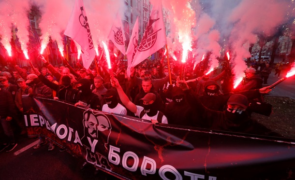 В минувший уикенд представители националистических и праворадикальных сил собрались в центре Киева и прошли маршем по случаю годовщины основания УПА, Дня казачества и праздника Покровы.