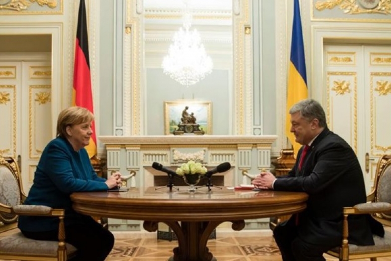 Глава государства говорил с немецким канцлером о ситуации на Донбассе и в Крыму, а также конфликте с Россией.