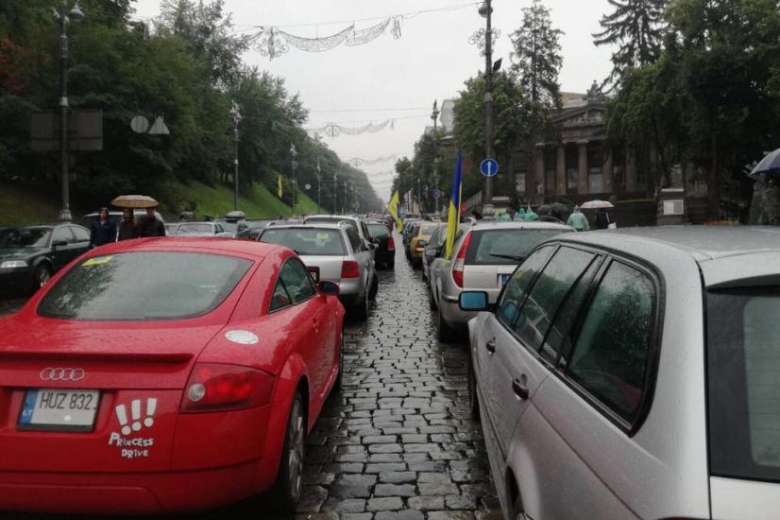 Как сообщают корреспонденты с места событий, участники протестов припарковали свои автомобили перед зданием КГГА на Крещатике.