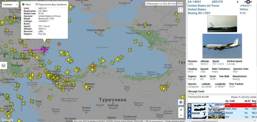 На радарах видно, что американский самолет-разведчик в 08:30 был в воздушном пространстве Болгарии