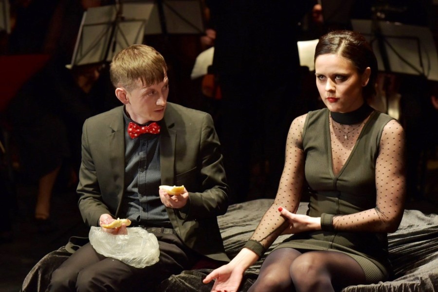 - Особенность постановки в том, что мы пытались раскрыть некоторые фрагменты текста через жанр оперетты. Так, например, герои спектакля здесь академическим вокалом «комментируют» чувства и отношения, а музыкальным сопровождением выступил аккомпанемент квартета музыкантов, - говорит режиссер спектакля Тамара Трунова.
