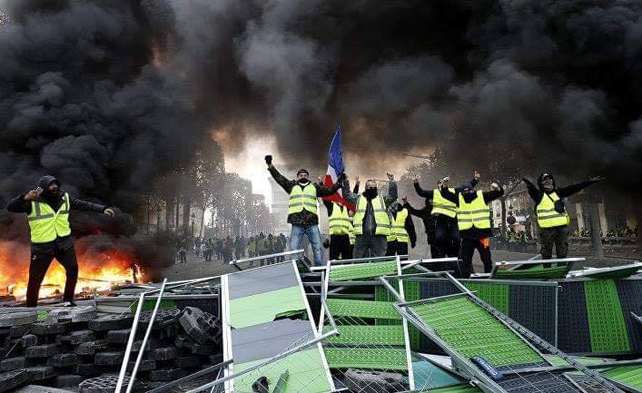 Напомним, во Франции бушуют массовые протесты "желтых жилетов". Столкновения на Елисейских полях в минувший уикенд продолжались с утра до поздней ночи. По данным МВД, в 1619 демонстрациях приняли участие 106 тысяч человек, при этом 130 человек были арестованы, из них 42 - в Париже.