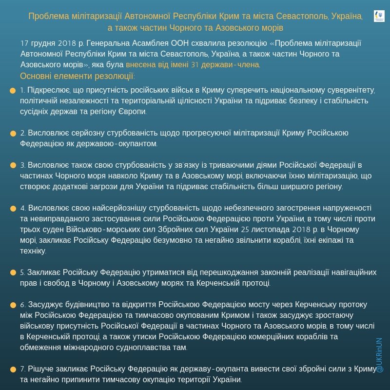 Напомним, резолюция о милитаризации открывает новое направление противодействия российской агрессии в Крыму и акватории Черного и Азовского морей - по безопасности.