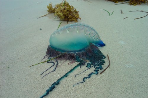 Португальский кораблик - считается одной из опаснейших медуз-убийц, держится на поверхности воды с помощью прозрачного пузыря, наполненного газом. Его верхняя часть, которая представляет собой крупный прозрачный пузырь 15-20 см в длину, очень похожа на корму корабля. Передвигается кораблик только благодаря ветру или течению воды. Под водой скрывается другая его часть – ядовитые щупальца. Их длина может достигать 30 метров. Особую опасность Physalia представляет для детей, стариков и людей с повышенной аллергической реакцией.
