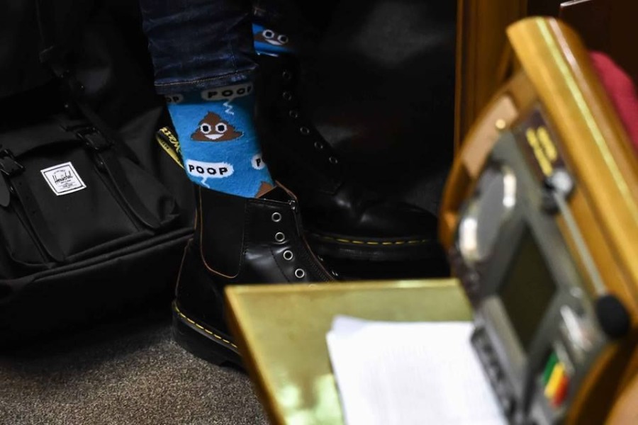 Депутат Верховной Радыот БПП Сергей Лещенко пришел на заседание Рады 15 января в необычных носках – с эмодзи "какашка". Фото опубликовал на своей странице в Facebook журналист Богдан Бортаков.