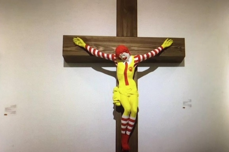 В Израиле вспыхнули массовые протесты и беспорядки из-за выставленной в музее фигуры распятого клоуна McJesus. Экспонат представляет собой клоуна McDonald’s распятого на кресте. Об этом сообщает Аljazeerа.