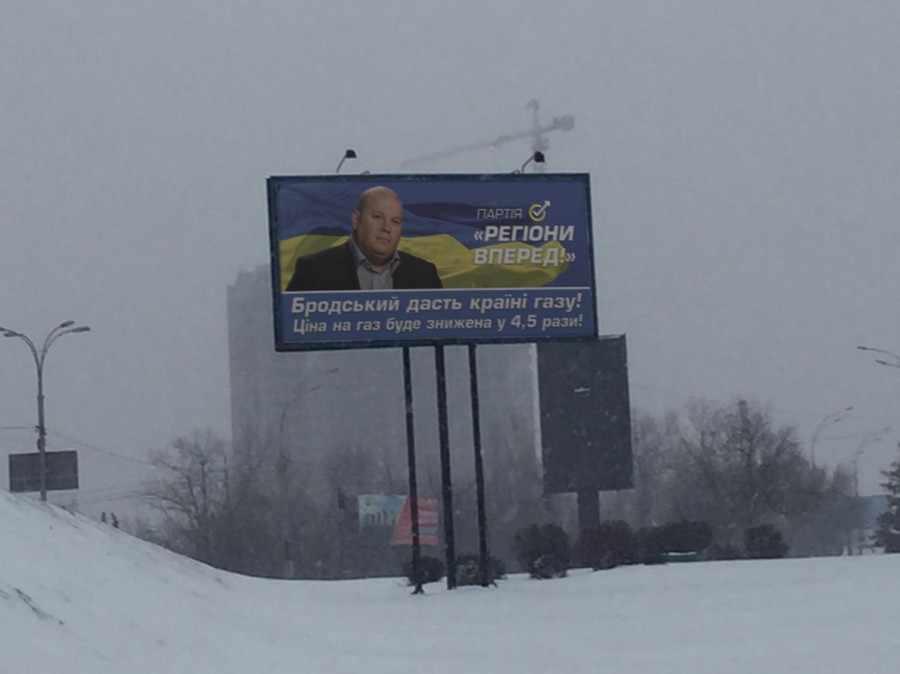 Нагадаємо, раніше на офіційному сайті партії «Регіони вперед!», лідером якої є Михайло Бродський зазначалось, що він 31 грудня привітав українців з Новим роком за допомогою бордів в регіональних центрах та пообіцяв, що замість типової агітації витратить кошти на м’ясо свинини українського виробника для кожного, хто за нього проголосує.
