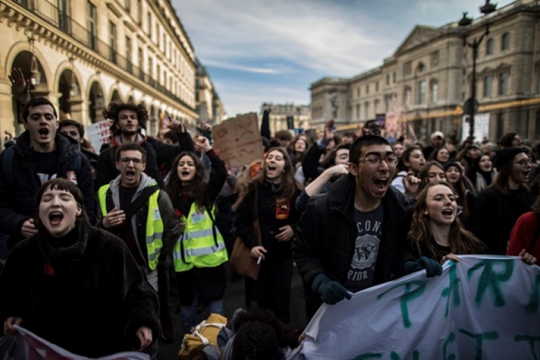 В охвативших Францию протестах приняли участие также сотни представителей движения "желтых жилетов", которые ранее скорее избегали акции профсоюзов.